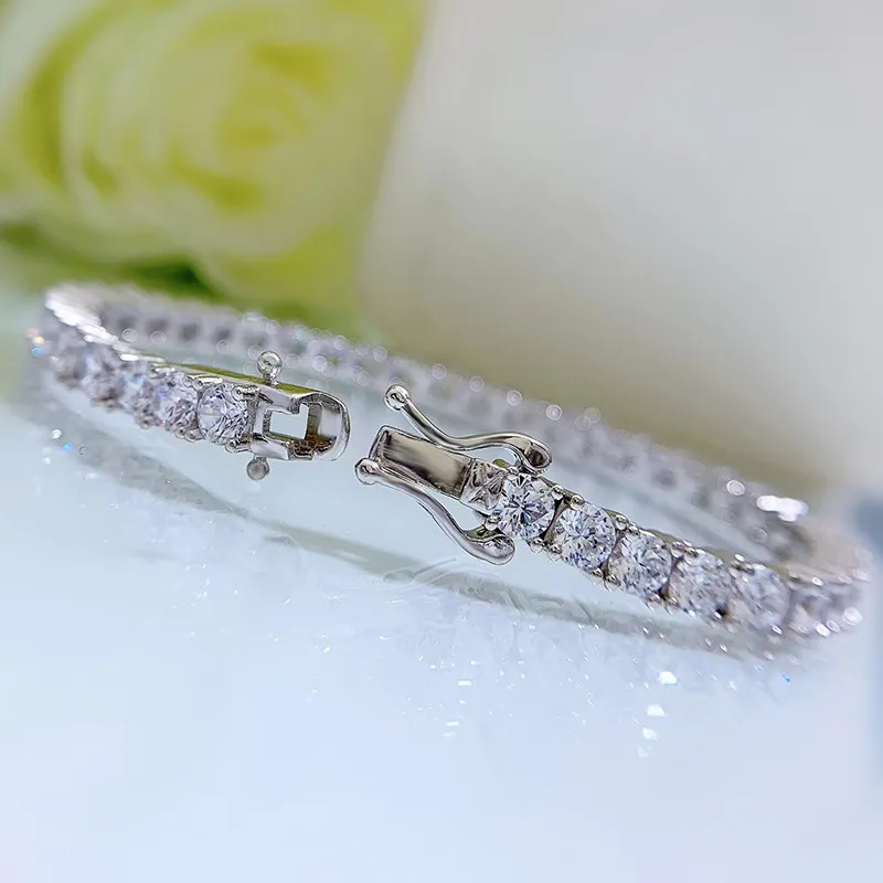 Need an iconic look with big shine? Its 3mm round cut prong-lifted stones will catch light from all angles, to keep your wrist dancing all day and night.